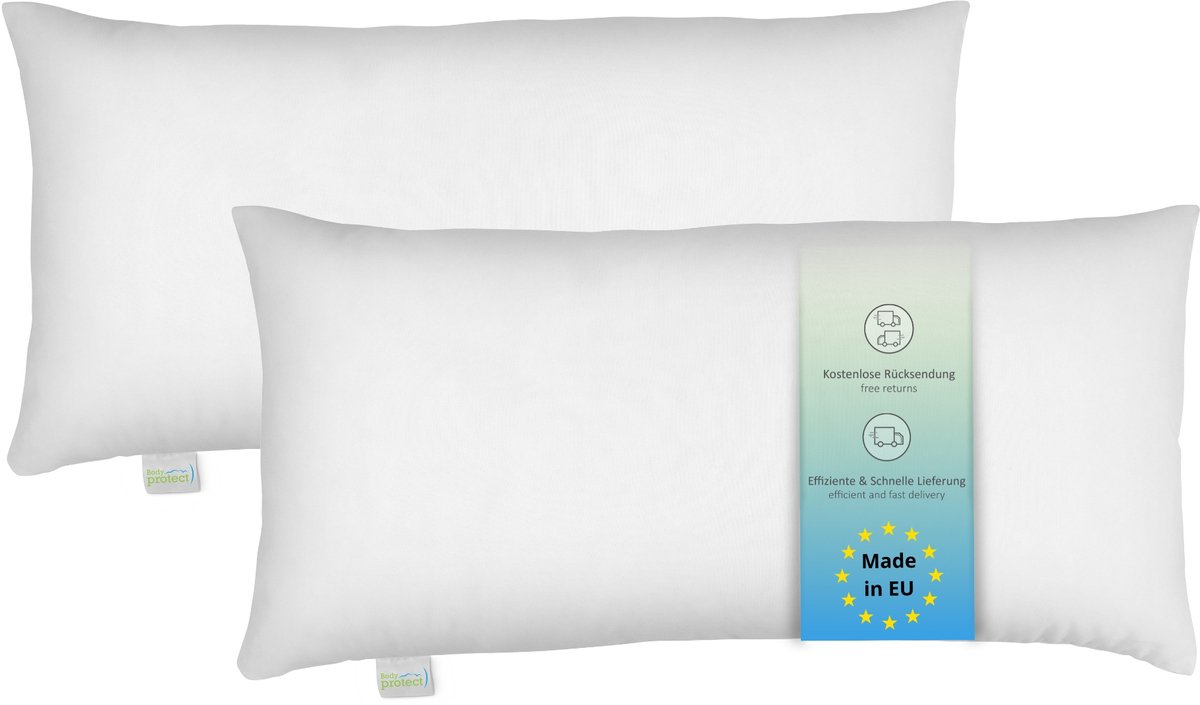 Bodyprotect ECOLine kussen 2 stuks 40 x 80 cm, set van 2 kussens, dubbelpak beddengoed van 100% microvezel, wasbaar, wit