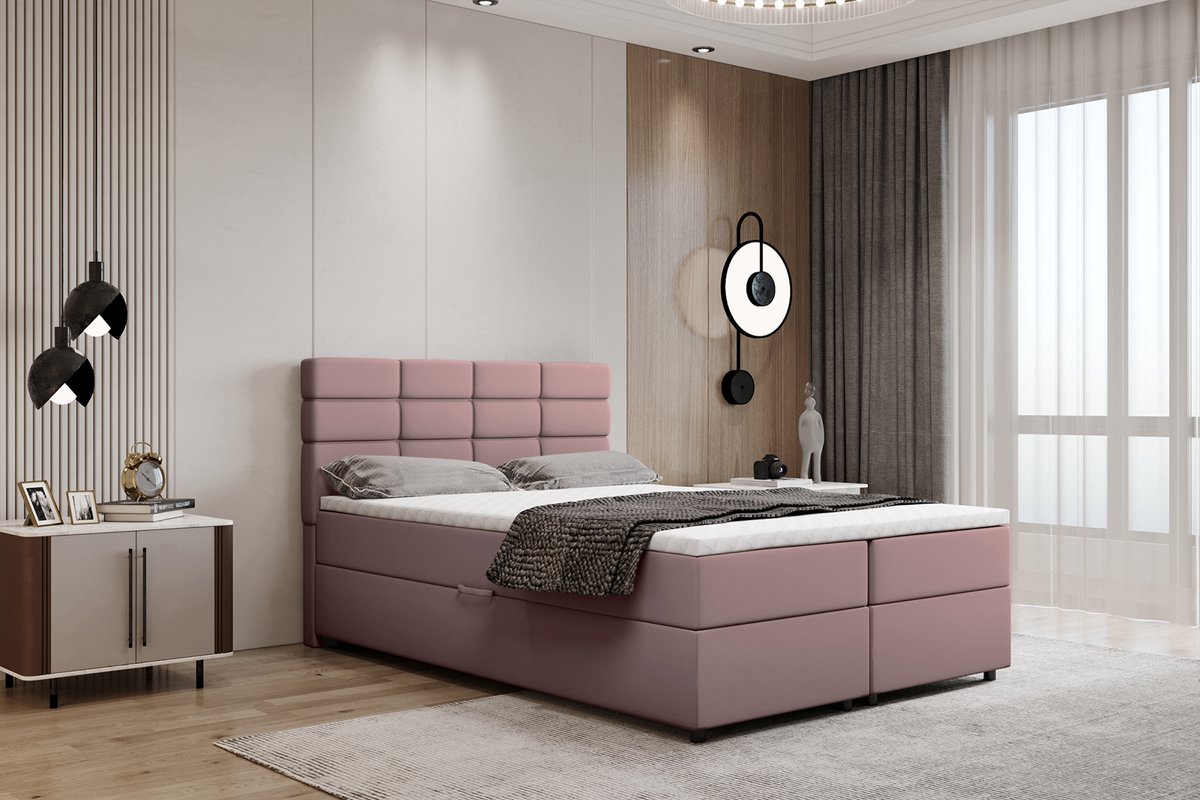 Boxspring met opbergruimte Reve 140 x 200 cm tweepersoons -Inclusief Topper - Roze