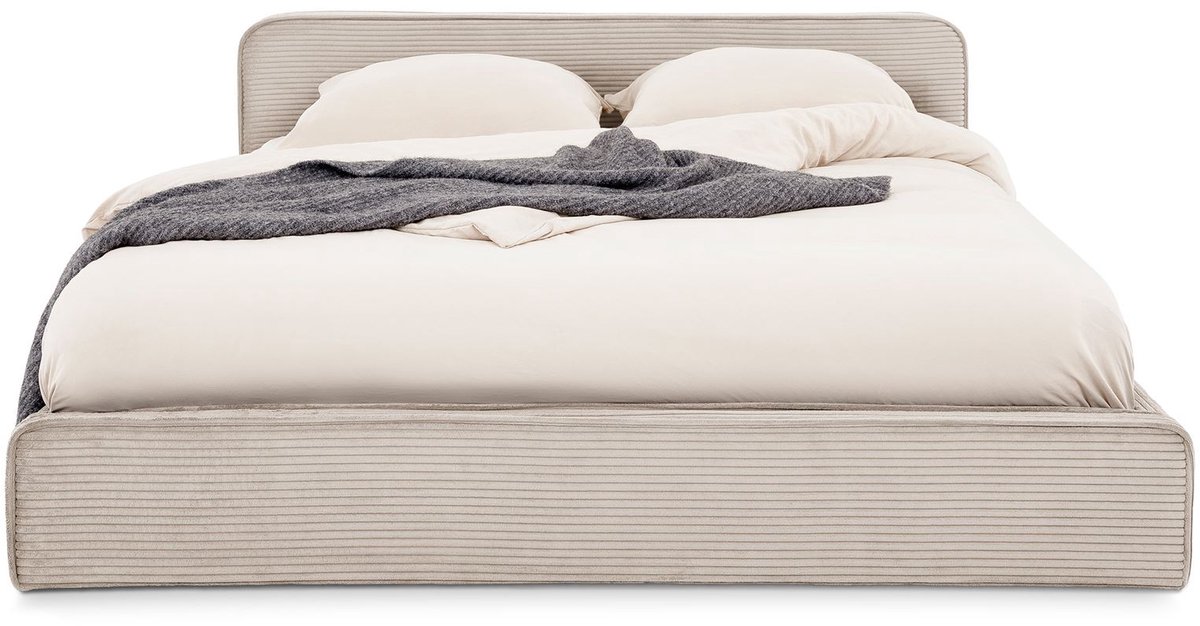Gestoffeerd bed CURSIOHet tweepersoonsbed maakt indruk met zijn elegante corduroy-look en zachte bekleding, die een gezellige sfeer creëert. Het gestoffeerde bed is uitgerust met een bijpassende lattenbodem en staat op discrete zwarte kunststof voetjes die het moderne ontwerp afronden. Het lichte kleurenschema past harmonieus in verschillende woonstijlen.Materiaal beschrijving: * Bedframe van hout en metaal * Stoffen hoes van 100% polyester, beige * Kunststof poten, zwartKenmerken: * Inclusief lattenbodem * Bekleding in koordlook * Hoofdbord met zacht oppervlakLevering en montage: * Leveringsomvang: 1 bedframe incl. lattenbodem * Gedemonteerd geleverd * Klantvriendelijke montage met bijgevoegde instructies * Levering door expediteur * Levering zonder decoratie