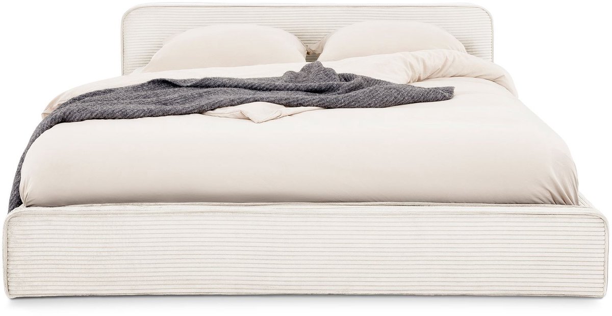 Gestoffeerd bed CURSIOHet tweepersoonsbed maakt indruk met zijn elegante corduroy-look en zachte bekleding, die een gezellige sfeer creëert. Het gestoffeerde bed is uitgerust met een bijpassende lattenbodem en staat op discrete zwarte kunststof voetjes die het moderne ontwerp afronden. Het lichte kleurenschema past harmonieus in verschillende woonstijlen.Materiaal beschrijving: * Bedframe van hout en metaal * Stoffen hoes van 100% polyester, crèmewit * Kunststof poten, zwartKenmerken: * Inclusief lattenbodem * Bekleding in koord-look * Hoofdbord met zacht oppervlakLevering en montage: * Leveringsomvang: 1 bedframe incl. lattenbodem * Gedemonteerd geleverd * Klantvriendelijke montage met bijgevoegde instructies * Levering door expediteur * Levering zonder decoratie
