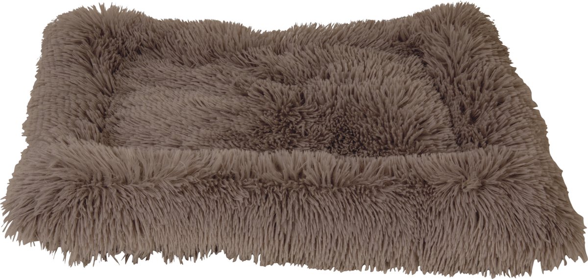Superzacht kussen Fluffy in rechthoekige vorm en bruine kleur met een afmeting van 66 cm x 45 cm. De bovenkant van het kussen bestaat uit 100% polyester, De onderkant uit 95% polyester en 5% PVC, De vulling bestaat uit 100% polyester. De onderkant beschikt over een anti-slip laag. Dit kussen is ideaal voor honden en katten.