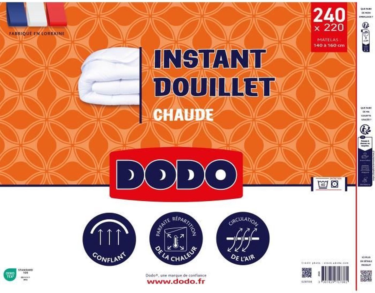 * Descriptif produit : DODO Couette Instant Cosy Chaude 220/240 - 300 g/m² Couette 2 personnes ultra douce pour dormir comme dans un nid douillet - Fabrication Française