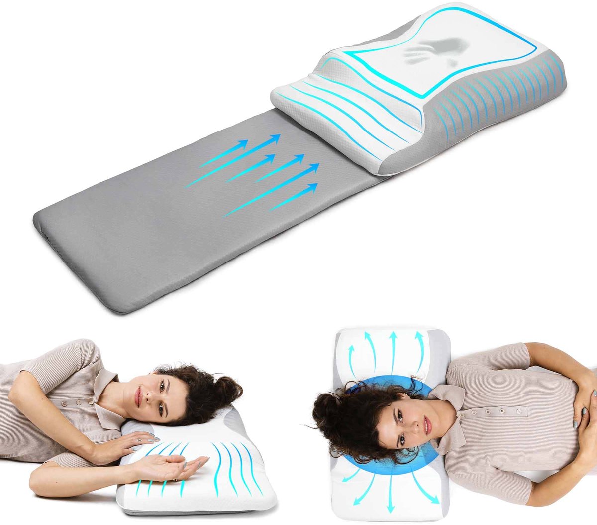 Doppeltes Ergo-Kussen - Ergonomisch Kussen - Hoofdkussen - Memory-Foam - Ondersteunt Nacken en Rug - Comfortabel en Duurzaam