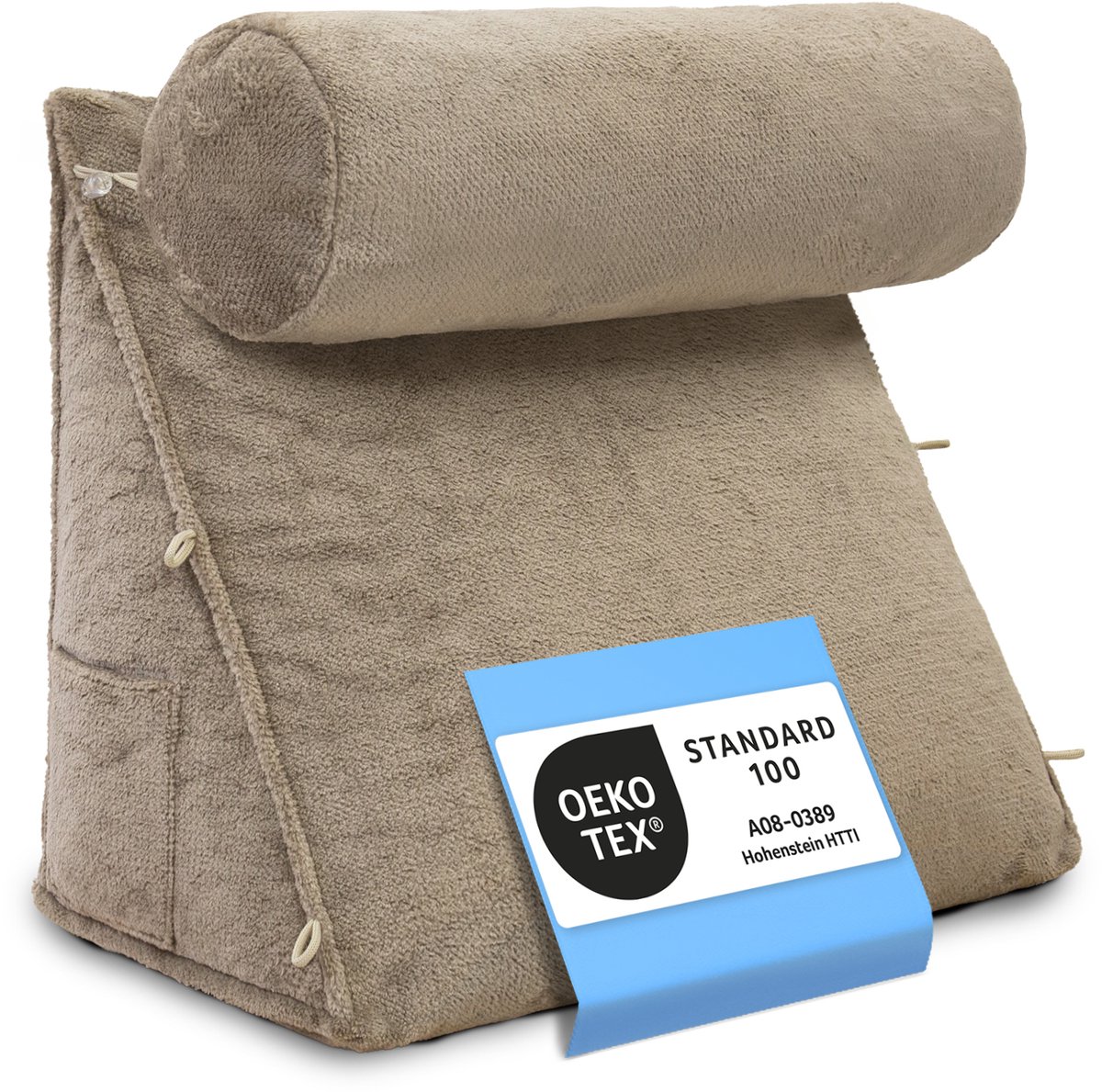 ELONEO Wigkussen - Nek- en Rugsteunkussen voor Rechtop Zitten in Bed, Lezen of op de Bank, met Zijvak en Afneembare Nekrol, Wasbare Hoes