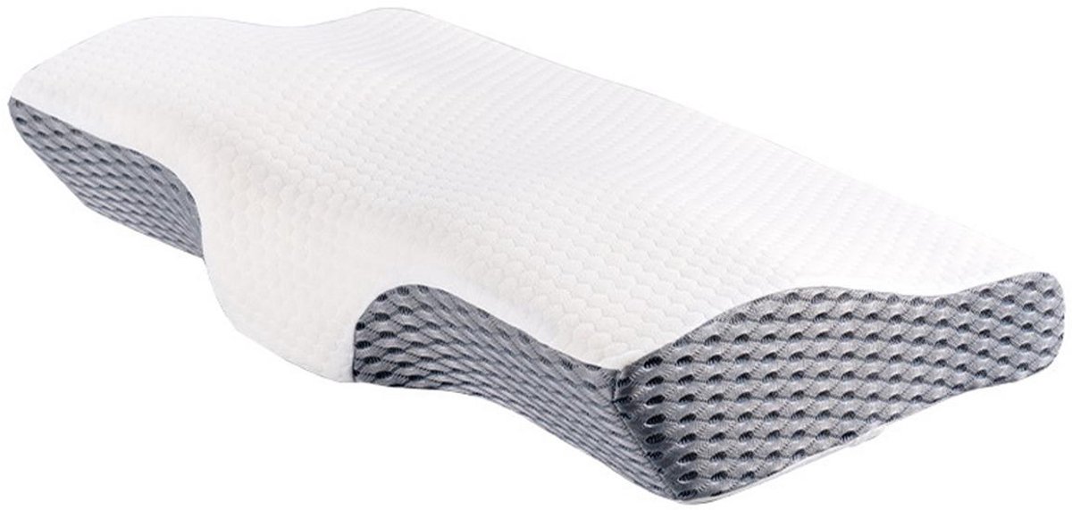 Eenmalige hersteltijd: Het ergonomisch nekhoofdkussen geheugen schuim heeft 4 tot 48 uur nodig om volledig terug te keren naar zijn originele vorm na gebruik, zodat de ondersteunende eigenschappen optimaal blijven werken over lange termijn. Deze unieke eigenschap zorgt voor duurzaam comfort en behoudt de vormintegriteit, zelfs bij dagelijks gebruik. Unieke ergonomische vorm: Het hoofdkussen is ontworpen met een afgestemde contourvorm inclusief centrale groef die het contactoppervlak vergroot en gerichte ondersteuning biedt aan de cervicale wervelkolom. Deze functie draagt bij aan een natuurlijke lichaamshouding tijdens slaap, vermindert spanning in de nekspieren en bevordert ontspanning van het bovenlichaam. Persoonlijke pasvorm en ademend comfort: Gemaakt van slow-rebound ventielgel geheugenschuim bekleed met ademende ijszijde stof, voelt dit nekhoofdkussen fris aan op de huid en voorkomt oververhitting. De combinatie van materialen zorgt voor een koel, comfortabel slaapgevoel, ook bij warm weer of nachtelijk zweten. Gezondheid eerst: Dankzij het vlinder-vleugelontwerp wordt gewicht gelijkmatig verdeeld over hoofd en nek, wat drukpunten vermindert en fysiologische ondersteuning biedt. Dit orthopedische ontwerp helpt effectief bij het verlichten van pijnklachten in de nek en schouders, en kan bijdragen aan verminderd snurken door verbeterde luchtwegpositie. Ideeal als nachtcombinatie: Dit memory foam hoofdkussen past zich aan elke slaaphouding aan – rug, zij of buik – en biedt consistente steun waar je het nodig hebt. Als gepersonaliseerde slaapoplossing is het een uitstekende keuze voor wie zoekt naar een anti-allergisch, huisstofmijtbestendig en hygiënisch onderhoudbaar slaapproduct voor dagelijkse verzorging. Productparameters: