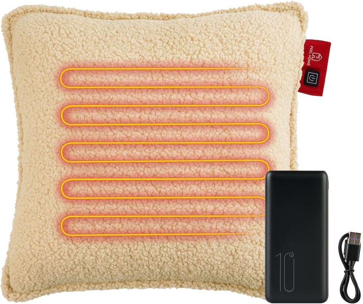 Gezellig Warmtecomfort in een Zacht, Stijlvol KussenBreng warmte en comfort naar elke ruimte met het Feel Home Verwarmend Kussen perfect voor de koude dagen of voor ultiem comfort op de bank of in bed. Dit kussen combineert het knusse gevoel van een teddy-achtige stof met de luxe van een ingebouwde verwarmingsfunctie.Ervaar aangename warmte, precies waar je die nodig hebt.Dankzij het slimme ontwerp warmt dit kussen snel op en houdt het de warmte langdurig vast. De gerichte verwarmingszone zorgt voor efficiënte warmte, zonder dat het kussen zwaar aanvoelt of snel afkoelt. Drie warmteniveaus: Kies uit 40°C, 50°C of 55°C voor jouw ideale warmtebeleving. Gerichte verwarming: én verwarmingszone zorgt voor gerichte warmte zonder dat het kussen zwaar of snel leeg is. Afmeting van 45cm x 45cm, zachte Teddybeer stof Inclusief 10.000mAh powerbank: Geniet van 4-6 uur warmte met een volledig opgeladen powerbank. Automatische uitschakeling: Voor extra veiligheid schakelt het kussen zichzelf uit na 45 minuten. Zacht, duurzaam materiaal: Gemaakt van gerecyclede vezels, voelt als schapenvacht en blijft lang mooi. Compact en draagbaar: Perfect voor op de bank, in bed of onderweg, altijd en overal warm comfort.Voel direct comfortabele warmte, precies op de plek waar je het nodig hebt en Drie Instelbare WarmteniveausDit kussen warmt razendsnel op en houdt de warmte lang vast dankzij het doordachte ontwerp. De enkele verwarmingszone biedt gerichte warmte, zonder dat het kussen zwaar wordt of snel afkoelt. Het Feel Home Verwarmend Kussen biedt drie warmteniveaus, zodat je zelf de perfecte temperatuur kunt kiezen. Met één druk op de knop zet je de warmte op hoog (55°C), gemiddeld (50°C), of laag (40°C) en geniet je van een persoonlijke verwarmingservaring. Het rode, blauwe en groene indicatielicht geven het warmte-instellingsniveau duidelijk weer.Oplaadbare Powerbank voor MobiliteitDit kussen wordt geleverd met een krachtige 10.000mAh powerbank die het kussen tot wel 6 uur lang van warmte voorziet, afhankelijk van de instelling. De powerbank is eenvoudig aan te sluiten via de USB-aansluiting en kan netjes in een speciaal vakje in het kussen worden opgeborgen onzichtbaar en onvoelbaar voor maximaal comfort.Automatische Uitschakeling voor Veilig GebruikVoor extra veiligheid is het kussen uitgerust met een automatische uitschakeling. Na 45 minuten schakelt het kussen zichzelf uit, zodat je zonder zorgen kunt ontspannen. Deze functie is ideaal voor gebruik in bed of tijdens een dutje op de bank warmte, zonder zorgen.Heerlijk Zacht en Duurzaam MateriaalDe teddy-stof van het Feel Home Verwarmend Kussen is niet alleen heerlijk zacht, maar ook gemaakt van hoogwaardige, gerecyclede vezels. Deze duurzame stof is kreukvrij, voelt als schapenvacht en behoudt zijn prachtige uitstraling, zelfs na intensief gebruik.Eenvoudig in GebruikMet een eenvoudige bediening en een snelle opwarming is dit verwarmde kussen jouw nieuwe favoriete accessoire voor de koude dagen. Gebruik het tijdens het kijken van je favoriete film, om te ontspannen na een lange dag, of als een warme metgezel in bed.KortomHet Feel Home Verwarmend Kussen biedt jou de ultieme combinatie van stijl, comfort en warmte. Een must-have voor iedereen die houdt van een knus en warm thuis.