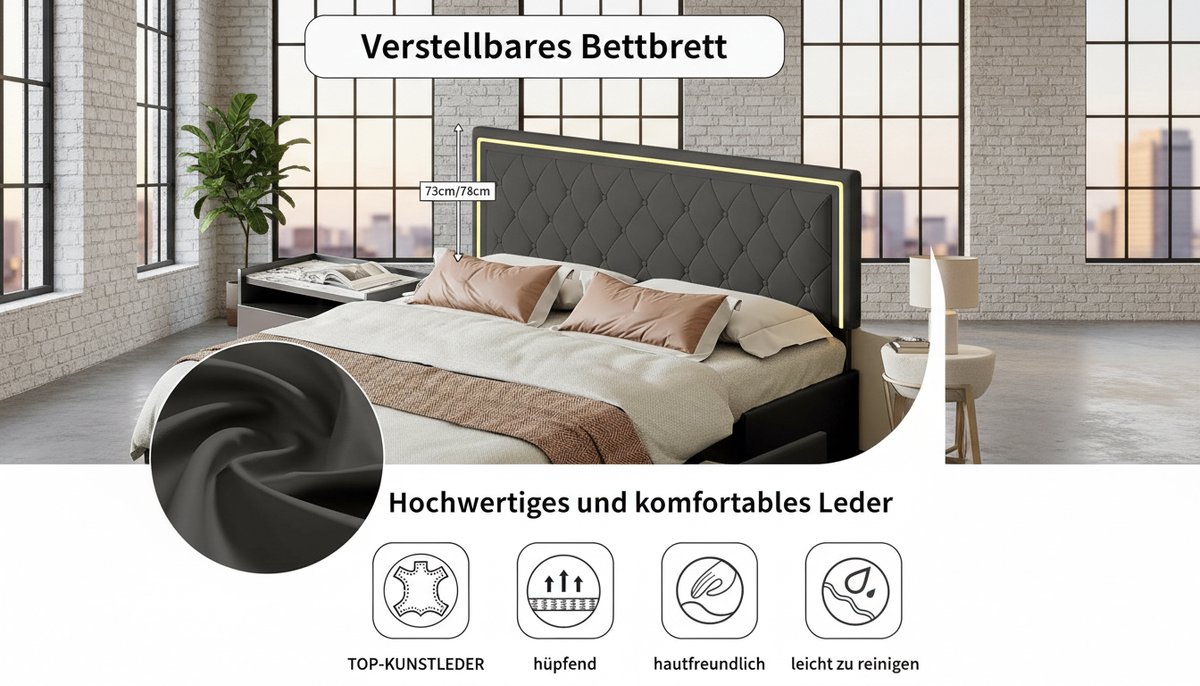 LumiCharge Luxe LED Bed 140x200 met Oplaadstation en Opbergruimte – Industrieel Tweepersoonsbed met Metalen Lattenbodem Merk: Casa Serena