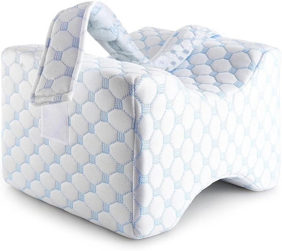 Je hoeft je geen zorgen te maken dat het kussen ‘s nachts verschuift. Dankzij de afneembare elastische beenband blijft het kussen stevig op zijn plek, zonder dat het knelt of irriteert. De zachte, ademende hoes voorkomt oververhitting en is machinewasbaar – dus altijd fris en comfortabel.