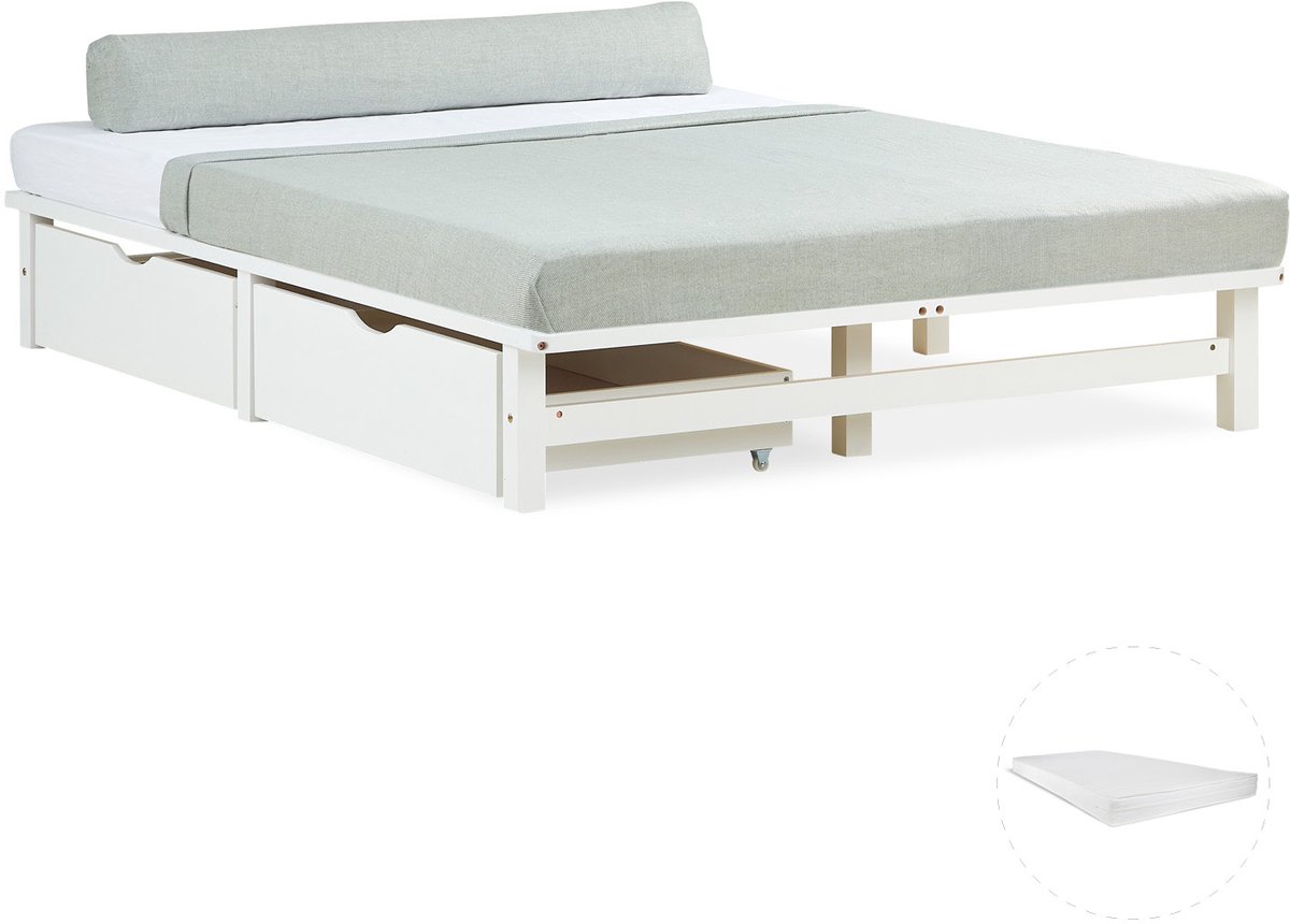 Matras inbegrepen! Dankzij de hoogwaardige matras die bij de levering is inbegrepen, is het bed direct klaar voor gebruik en zorgt het voor een goede nachtrust. Het massieve grenenhout garandeert duurzaamheid en robuustheid, terwijl de elegante witte laklaag het ontwerp afmaakt.