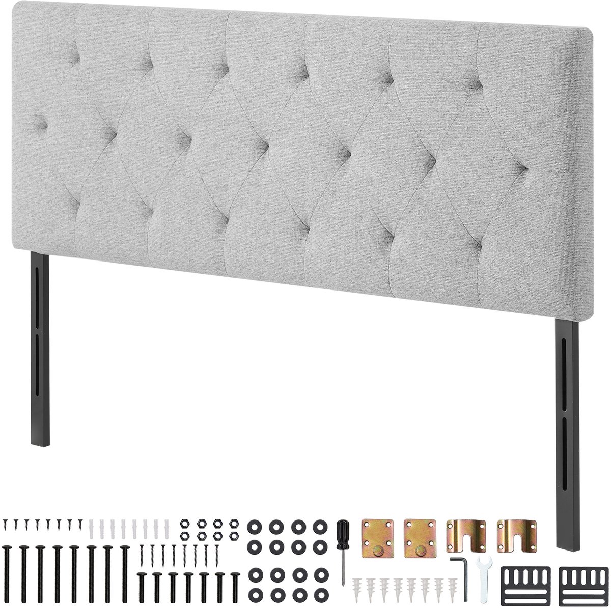 Vlekbestendig ruitpatroon: gemaakt van dicht geweven linnen dat bestand is tegen vlekken en gemakkelijk te reinigen is. Dierenharen en stof kunnen moeiteloos worden verwijderd, waardoor een schone en verzorgde omgeving ontstaat. Het stijlvolle ruitvormige stikselontwerp combineert klassieke en moderne elementen en brengt een elegante en frisse stijl in uw slaapkamer. Hogedichtheidsschuim voor comfort: het dik gewatteerde kussen zorgt voor optimale ondersteuning en comfort terwijl u in bed ligt te ontspannen. Of u nu leest of tv kijkt, u geniet van een aangename rugsteun voor maximaal comfort. Verstelbare hoogte van het hoofdeinde: het hoofdeinde kan in hoogte worden versteld van 905 mm tot 1205 mm, zodat het compatibel is met verschillende bedframes. Dankzij de eenvoudige montage past het gemakkelijk in uw slaapkamer. Stabiliteit en duurzaamheid: het robuuste frame van koolstofstaal en de slijtvaste stalen poten zorgen voor een hoge stabiliteit. Dit hoofdeinde blijft stevig op zijn plaats en biedt u jarenlang betrouwbare ondersteuning. Eenvoudige installatie & onmiddellijke ontspanning: de set bevat alle benodigde onderdelen voor de montage. Bevestig de poten aan het hoofdeinde en verbind het met uw bedframe. Al snel kunt u genieten van een gezelligere en aantrekkelijkere slaapkamer. Aantrekkelijk en stijlvol ontwerp