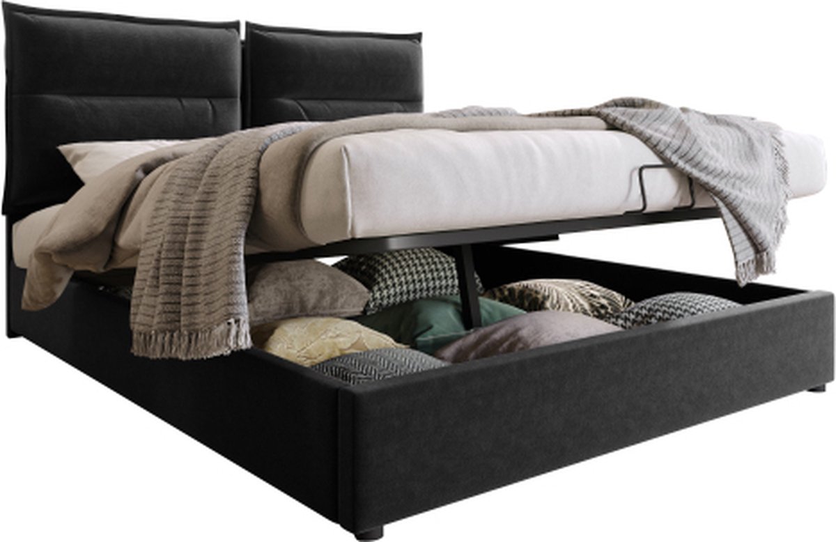 Hydraulisch tweepersoonsbed gestoffeerd bed 140x200cm, verstelbaar hoofdeinde, bed met lattenbodem van metalen frame, fluweel, modern bedframe met opbergruimte, grote opbergruimte, zwart (zonder matras)