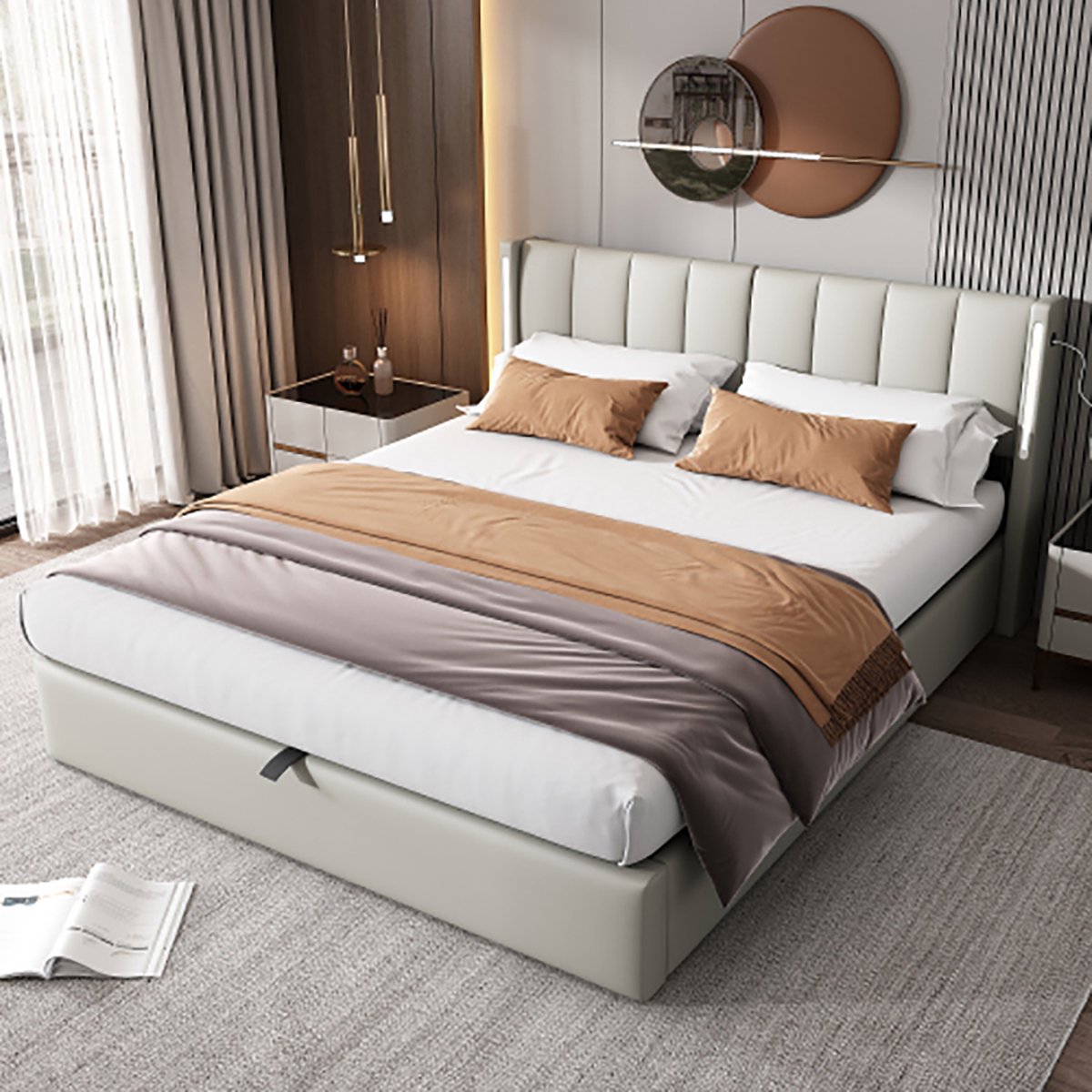 Strovea linnen gestoffeerd bed-Opbergruimte-140x200-Grijs-Gestoft bed met USB-LED (Zonder matras)
