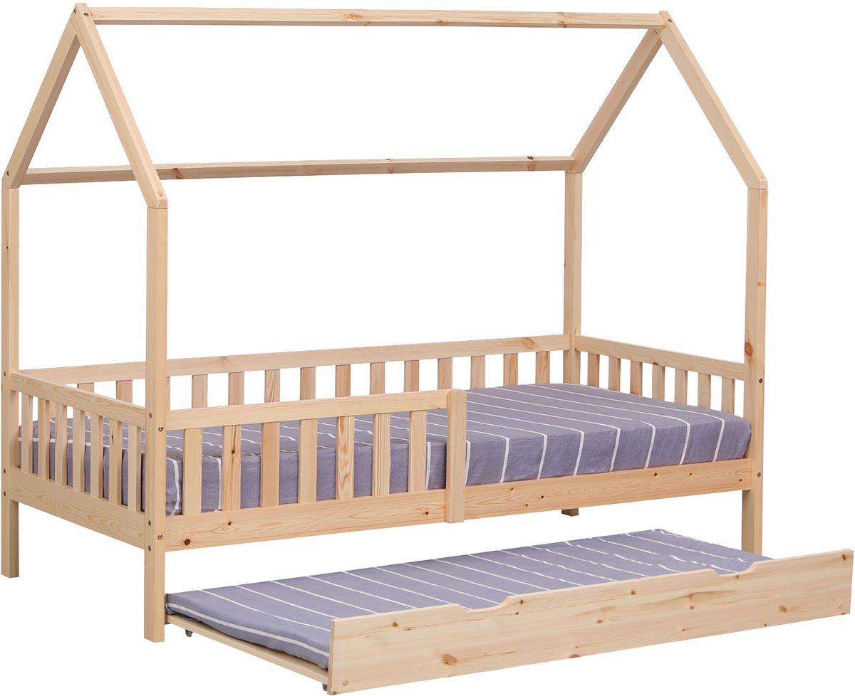 Wil uw kind een vriendje of vriendinnetje uitnodigen om te blijven slapen? Geen probleem met dit onderschuifbed, dat een lade heeft onder de lattenbodem om een comfortabele slaapplaats te creëren voor een tweede kind. Dit houten kajuitbed van 190 x 90 cm is perfect voor de inrichting van de slaapkamer en geeft een decoratief tintje met zijn moderne en originele design.