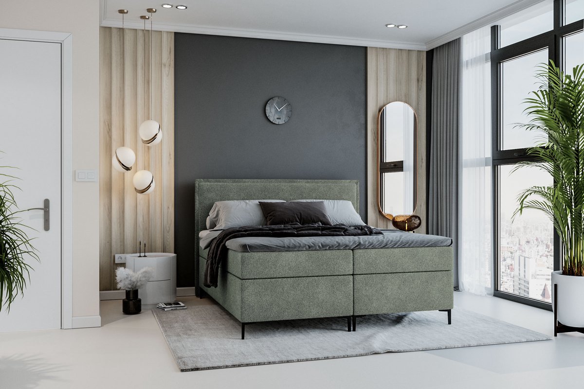 Ben je op zoek naar een modern en comfortabel bed dat niet alleen heerlijk slaapcomfort biedt, maar ook nog eens handige opbergruimte heeft? Dan is de Meuba Home - Berlin Boxspring in de kleur groen, met afmetingen van 180x200 cm, gemaakt van zachte teddy stof en voorzien van een topper van 8 cm dikte, precies wat je nodig hebt!