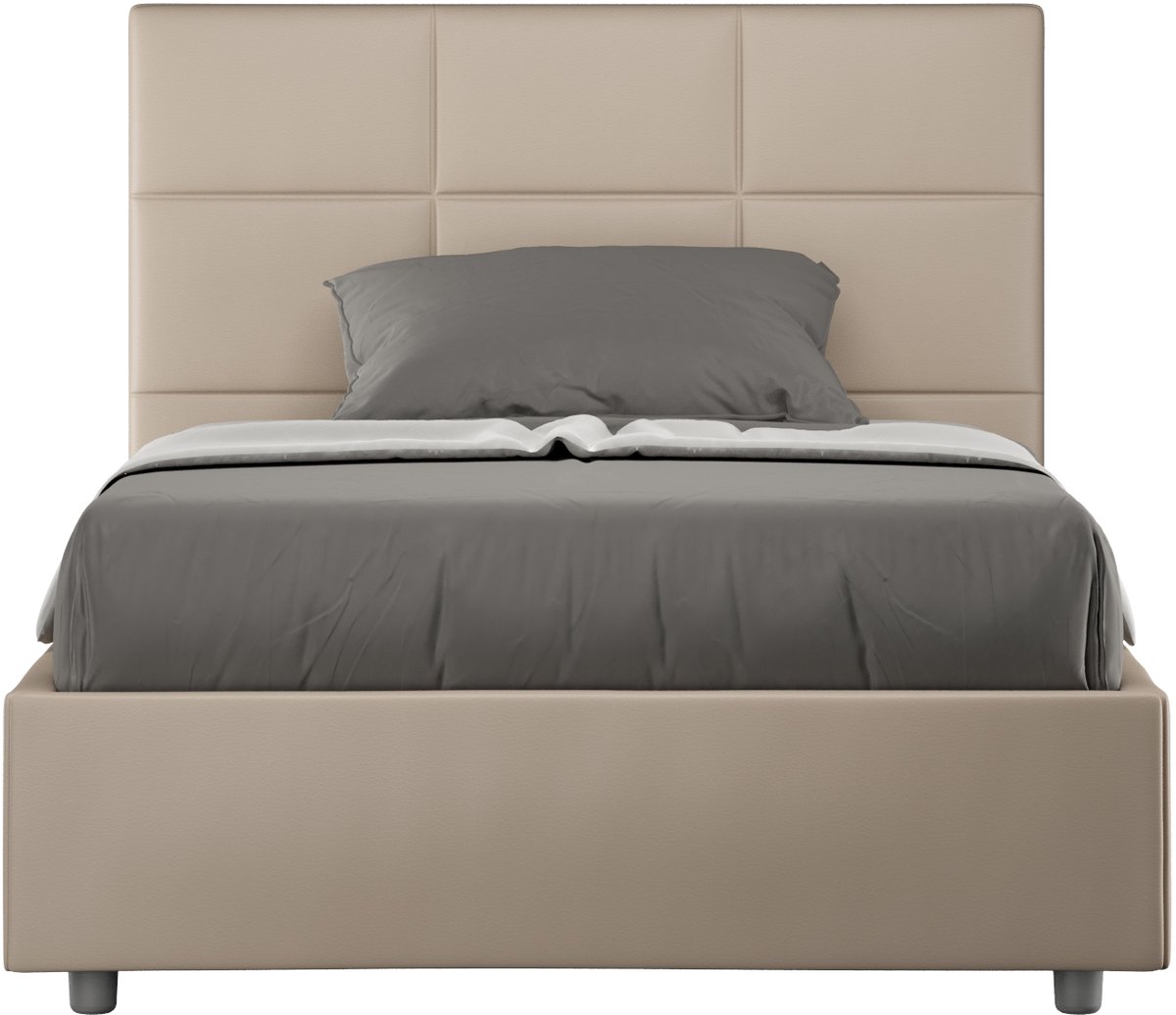 Mika queensize bed met gewatteerde container 120x190 duifgrijs kunstleer