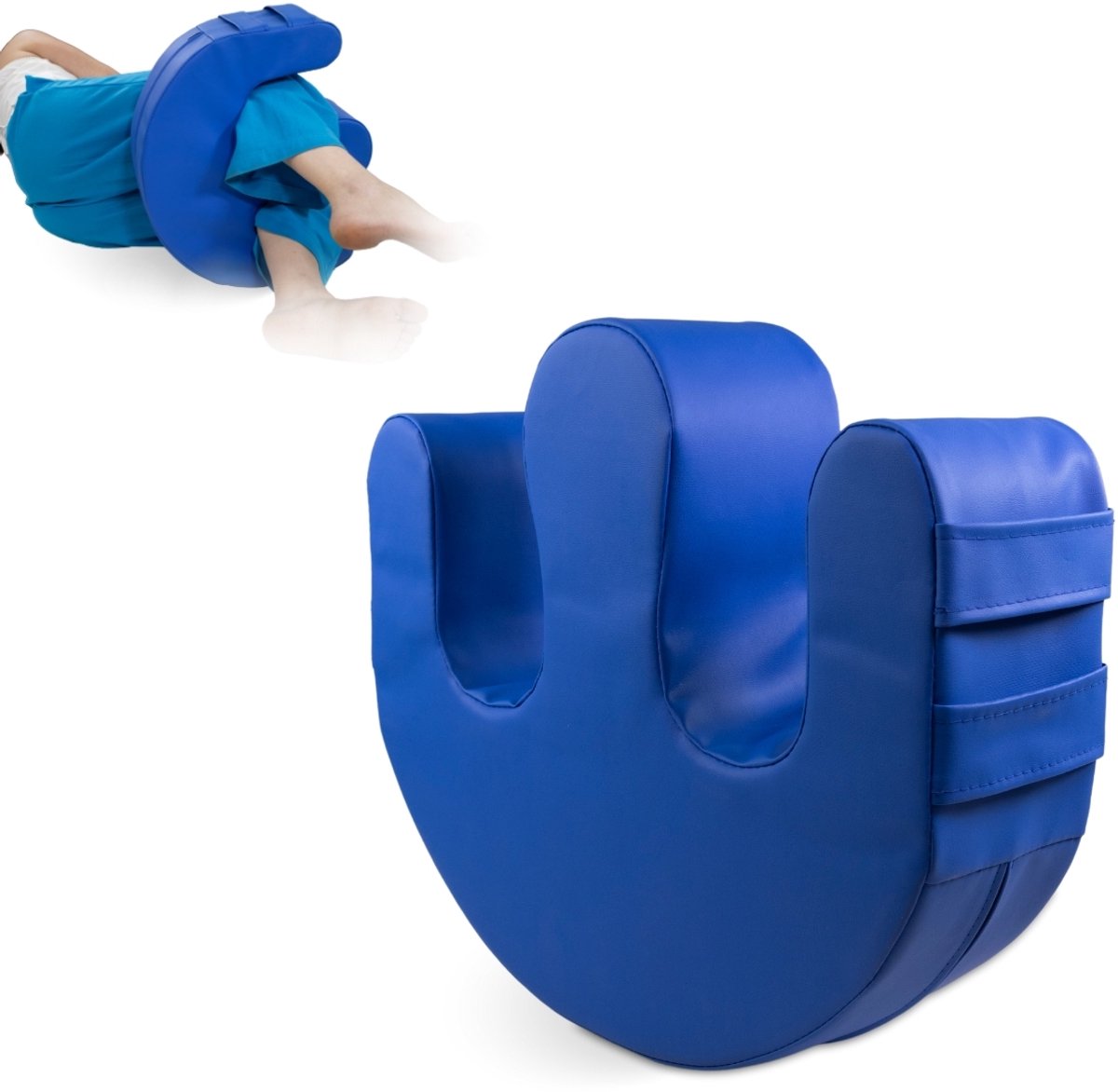 Het kussen heeft een U-vorm met twee openingen voor de benen van de gebruiker en een afgeronde scheider.