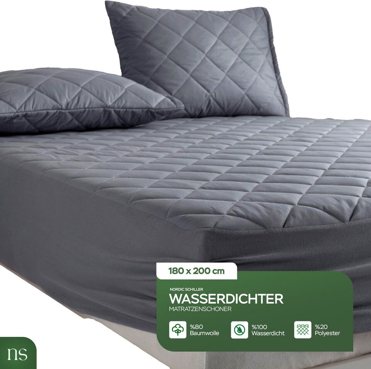 Nordic Schiller 180X200+35 Microvezel gewatteerde matrasbeschermer, vochtbestendig, wit matrasbeschermer, matrastopper,hoeslaken, Grijs