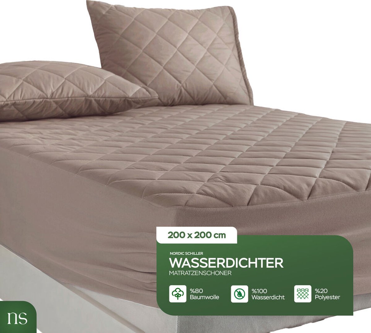 Nordic Schiller 200X200+35 Microvezel gewatteerde matrasbeschermer, vochtbestendig, wit matrasbeschermer, matrastopper,hoeslaken, Beige