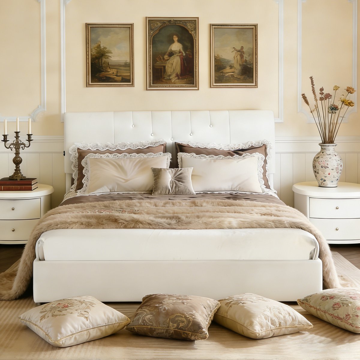 1. Moderne Uiterlijk De hoofdboezem is ontworpen met lijnen en stoffen knopen, eenvoudig en toch modern en trendy. Het sobere melkwitte uiterlijk past eenvoudig bij elk slaapkamerstijl en voegt een warme en moderne sfeer toe aan de slaapkamer.