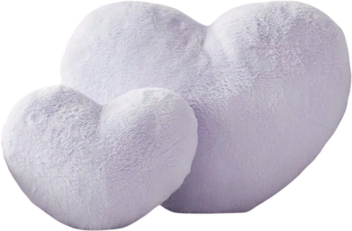 S&E Zachte Hartvormige Kussen - Pluche Konijnenbont Decoratief Kussen voor Bank, Bed of Slaapkamer - Perfect Valentijnscadeau voor Meisjes en Vrouwen - 50 x 34 cm - Paars