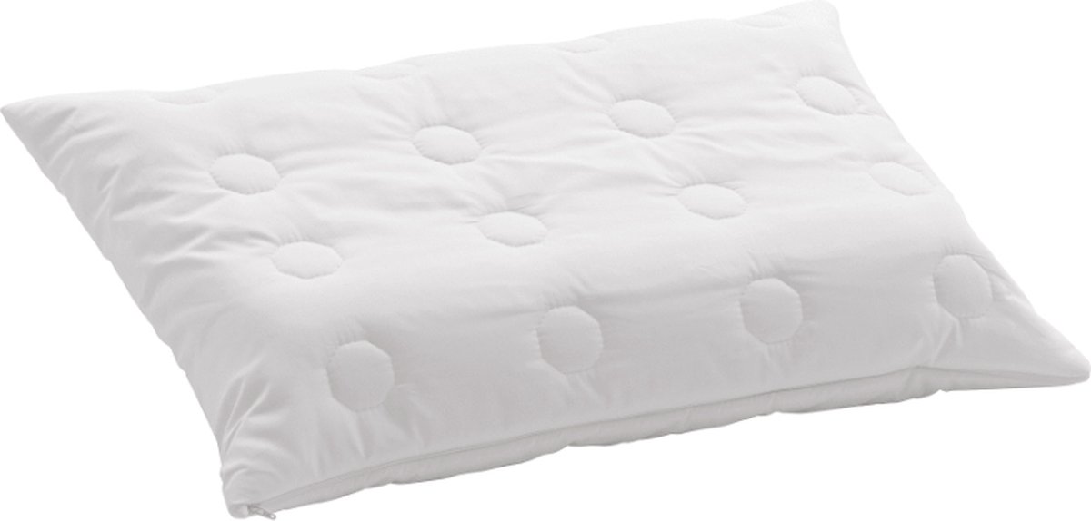 100% katoen, satijn, wit, hydrofiel, doorgestikt met 100% polyester. Hoes met ritssluiting.