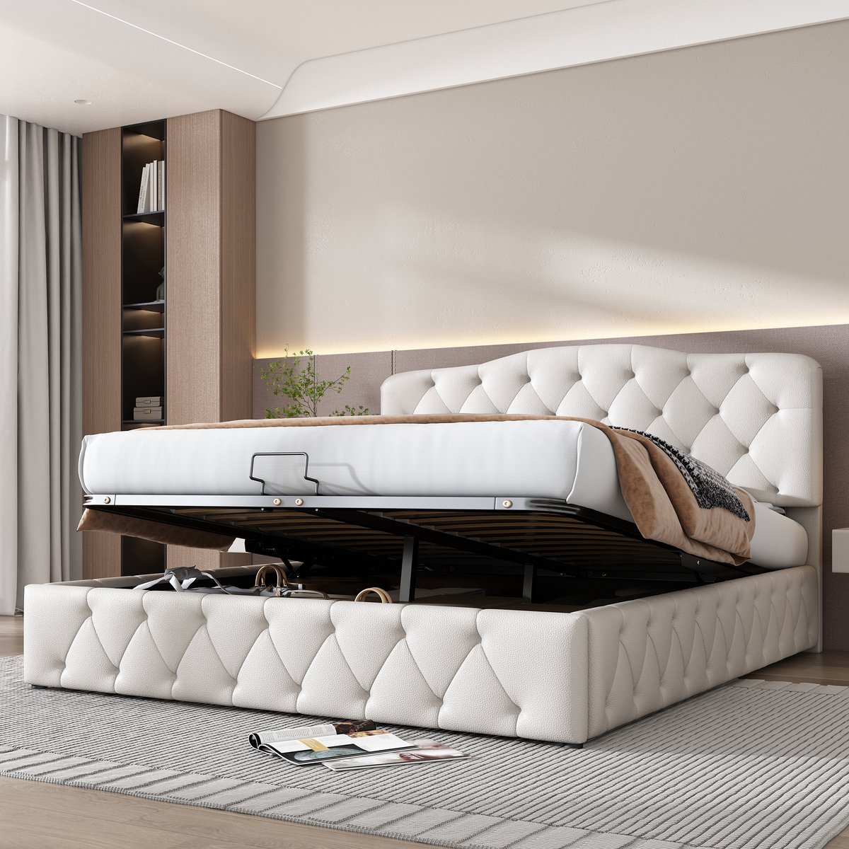 Krachtige opbergfunctie: De hydraulische bedbodem is uitgerust met hoogwaardige luchtstangen, wat een kwaliteitsgarantie voor uw bedbodem kan bieden. De bedbodem biedt opbergruimte voor uw spullen en houdt uw kamer schoon en comfortabel.