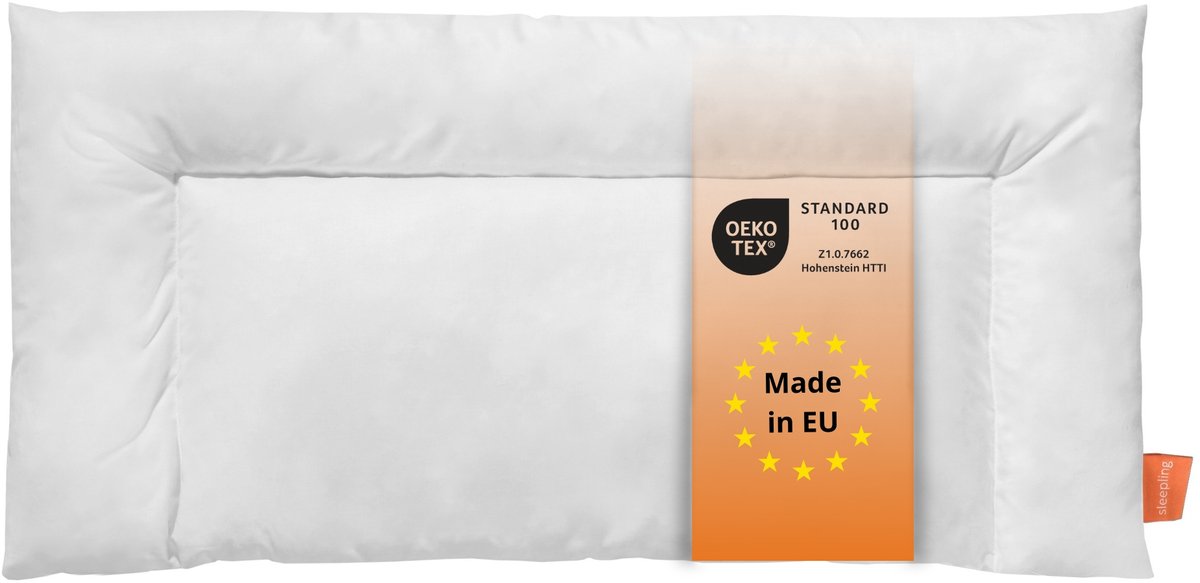sleepling buikslaperkussen - hoofdkussen 60x40 cm - kussen voor buikslapers - als neksteunkussen, plat kussen en slaapkussen voor kinderen - Made in EU - 80 x 40 cm - wit
