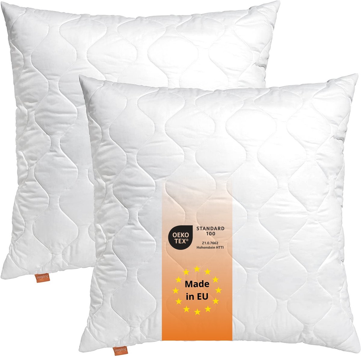 sleepling Komfort - extra dik hoofdkussen 80x80 cm 2-delige set - stevig kussen van polyester - kussen set - slaapkussen met extra veel vulling - Made in EU - 80 x 80 cm - wit