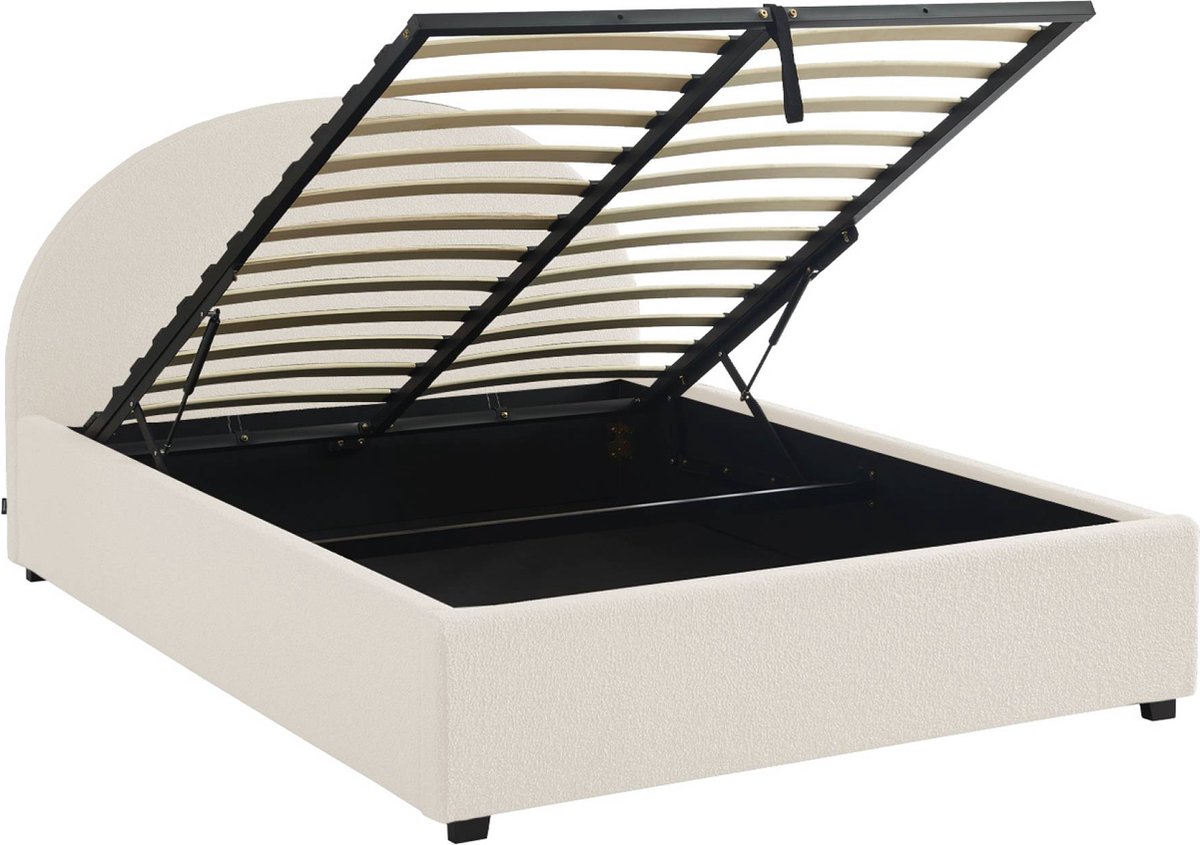 Het hoofdbord biedt extra ondersteuning die het algehele comfort van het bed verhoogt, waardoor het bijzonder aangenaam is met zijn bouclette-afwerking.