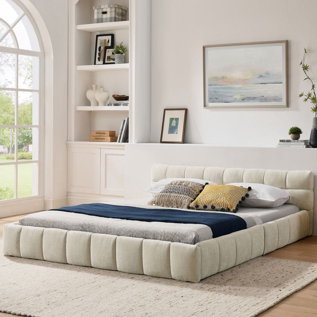 Waarom dit bed perfect bij jou past Stevige en duurzame constructie – De combinatie van stevig eucalyptushout en een robuust ijzeren frame zorgt voor uitstekende stabiliteit en een lange levensduur. Zo kun je elke nacht gerust zijn van een solide basis die tegen een stootje kan. Elegant en functioneel ontwerp – De zachte chenille bekleding met vierkante stiknaden geeft het bed een moderne en gestructureerde uitstraling. Deze stiknaden voorkomen pilling en vervorming, waardoor het bed er lang mooi blijft uitzien, zelfs bij intensief gebruik. Ruimtelijk en comfortabel slapen – Met het formaat 160 x 200 cm heb je extra ruimte om fijn te slapen en te ontspannen. Perfect voor wie waarde hecht aan comfort zonder in te leveren op een stijlvol design. Onderhoudsgemak – De gladde oppervlakte van de chenille stof laat zich eenvoudig schoonhouden. Stof veeg je er zo af en lichte vlekken verwijder je gemakkelijk met een zachte doek en mild schoonmaakmiddel. Eenvoudige montage – Het bed wordt volledig geassembleerd geleverd en is gemakkelijk in elkaar te zetten. Zo staat jouw nieuwe slaapplek snel klaar om van te genieten. Belangrijke specificaties Afmetingen: 160 x 200 cm (geschikt voor twee personen) Materiaal frame: stevig zwart ijzer Materiaal bedbodem: duurzaam eucalyptushout Bekleding: zachte en onderhoudsvriendelijke chenillestof in beige kleur Maatwerk in comfort zonder matrasset inbegrepen Maak van jouw slaapkamer een plek om heerlijk te ontspannen Of je nu s’ avonds snel wilt wegdromen of ‘s ochtends uitgerust op wilt staan: dit bed biedt de perfecte combinatie van comfort, duurzaamheid en stijl. Het donkere metalen frame geeft een moderne touch en de zachte bekleding nodigt uit om te ontspannen. Dankzij het robuuste ontwerp en het onderhoudsgemak geniet je jarenlang van een fijne nachtrust, zonder veel gedoe.
