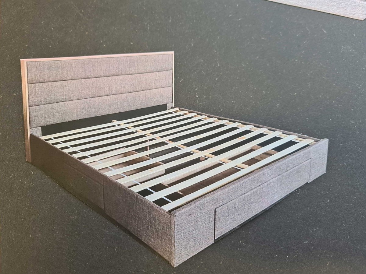 linnen gestoffeerd bed-Opbergruimte-180x200-Grijs-Gestoft bed met USB-LED (Zonder matras)