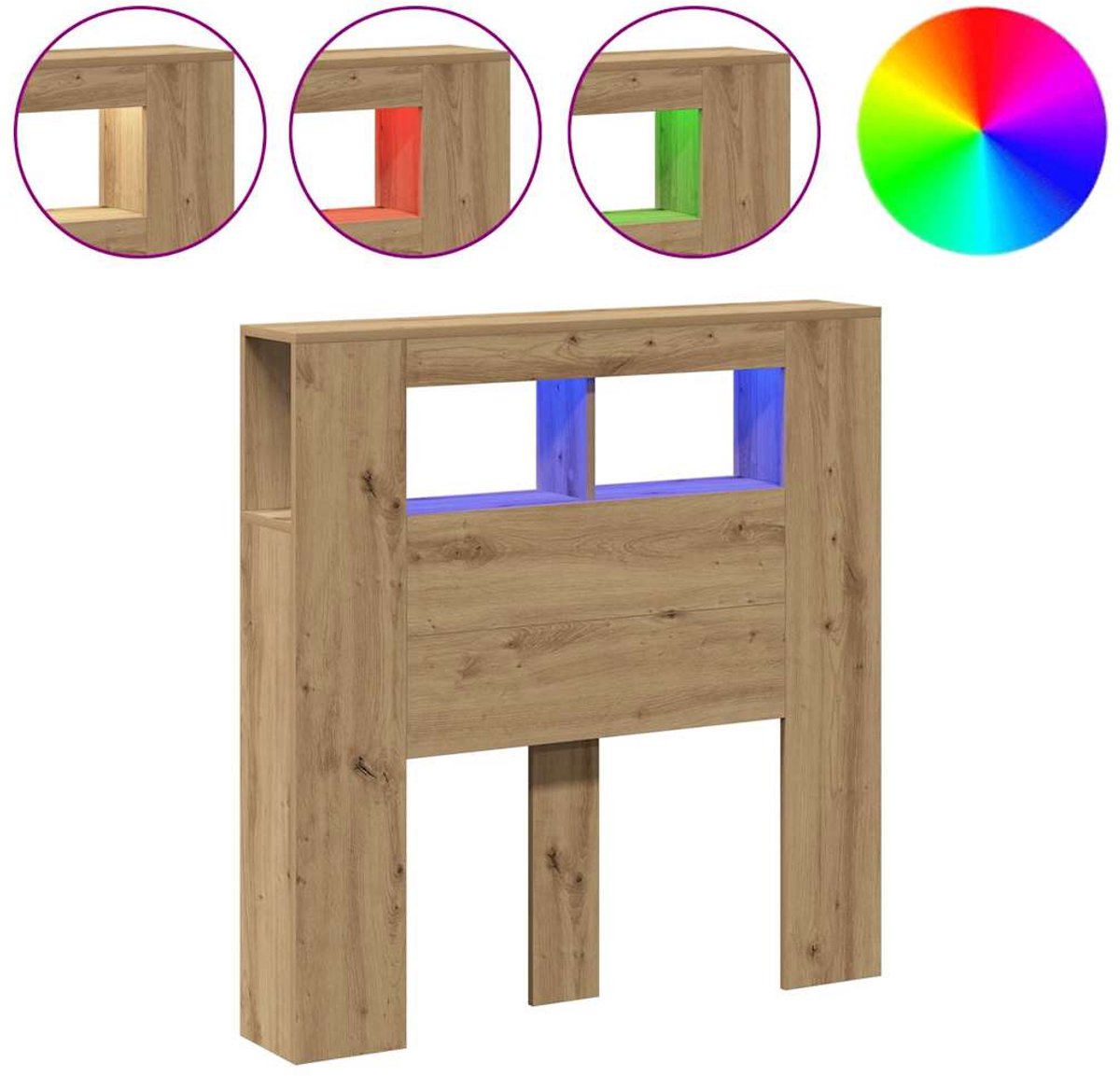 vidaXL - Hoofdeinde - met - LED - 100x18,5x103,5 - cm - hout - artisanaal - eikenkleur