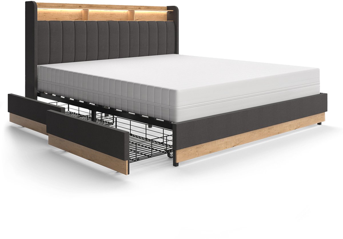 Vitalispa Nura Gestoffeerd bed – 180x200 cm met 4 laden Antraciet