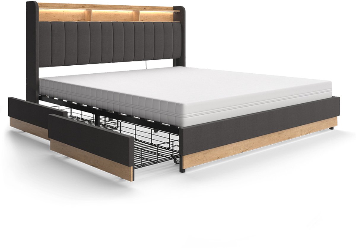 LEVERING: 1x bed, 1x USB-aansluiting. 1x LED-strip, 1x afstandsbediening, 4x laden met metalen rooster (decoratie niet inbegrepen)