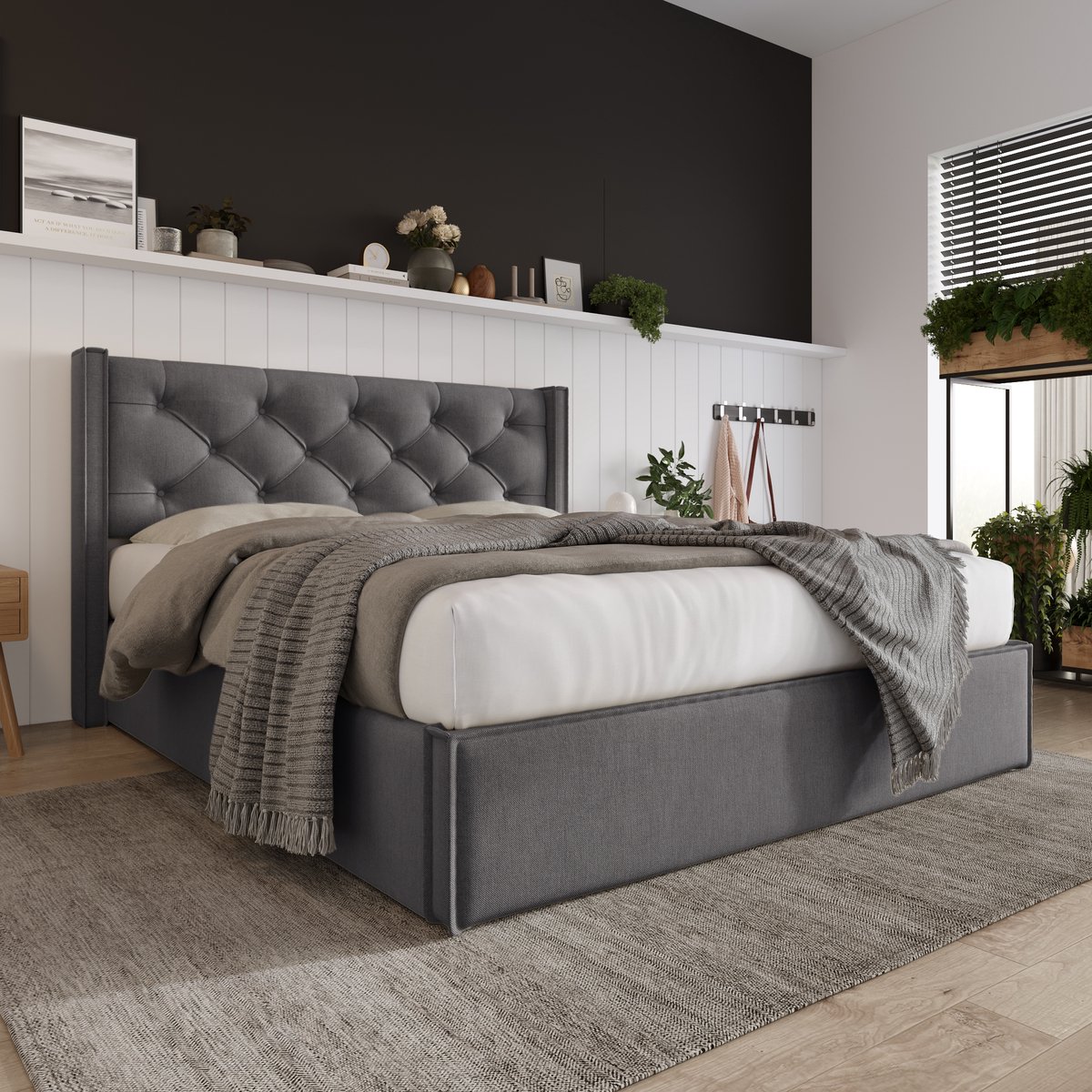 Wishdor - Tweepersoonsbed - Opklapbare Opbergruimte - Retro - Slaapkamer - Katoen - Grijs - 140 X 200 Cm